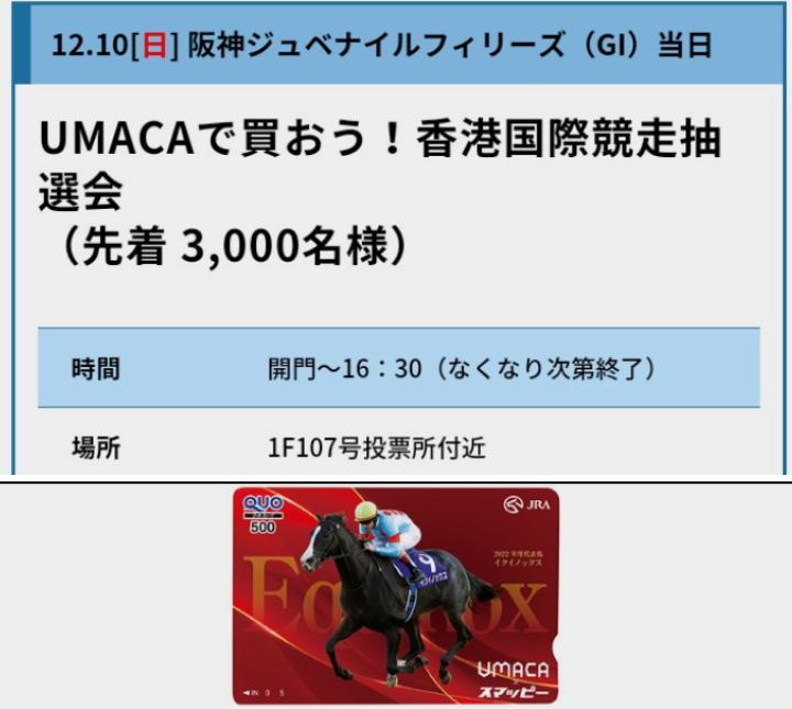 5枠というか【9番】は要注意だと思ってます。昨日の「香港ヴァーズ」のウインマリリンも【9番】、先週の「UMACAで買おうスタートダッシュ抽選会」のプレゼントにサトノクラウンとアドマイヤマーズのQUOカードがありましたが隠れているのが【9番】、今週の「UMACAで買おう」はイクイノックスの【9番】ですので怪しんでます。