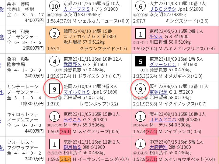 2023年④着(118)→11着(76)→9着(114)→9着(87)→