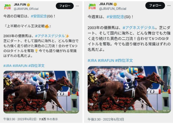 ②過去に行われた同レースが基準になる場合もある。