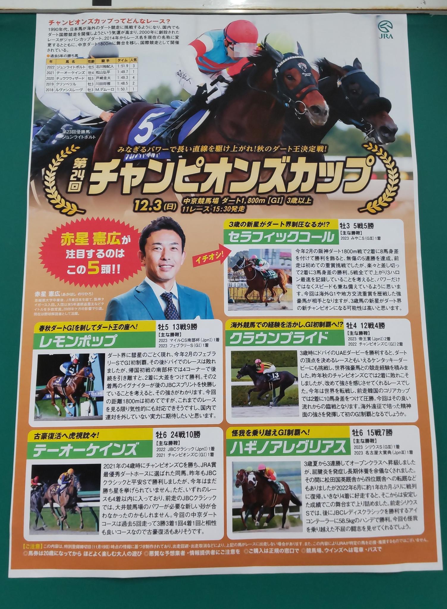 JRAの砂の王道はフェブラリーSとチャンピオンズカップ。両レースの頂点へと言ってる気がします。出走メンバーで唯一フェブラリーSを勝っているレモンポップ。