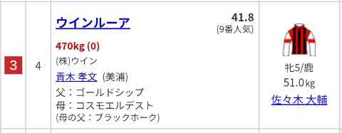 【3枠】【ウインの牝馬】【佐々木】。