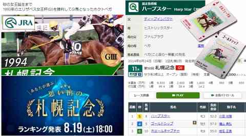 札幌記念で連想するなら、当然、ランキング上位にいるであろう、ハープスターVSゴールドシップの2014年。
