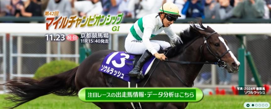 ホームページのマイルチャンピオンシップの文字が、凄いカラフルですね。