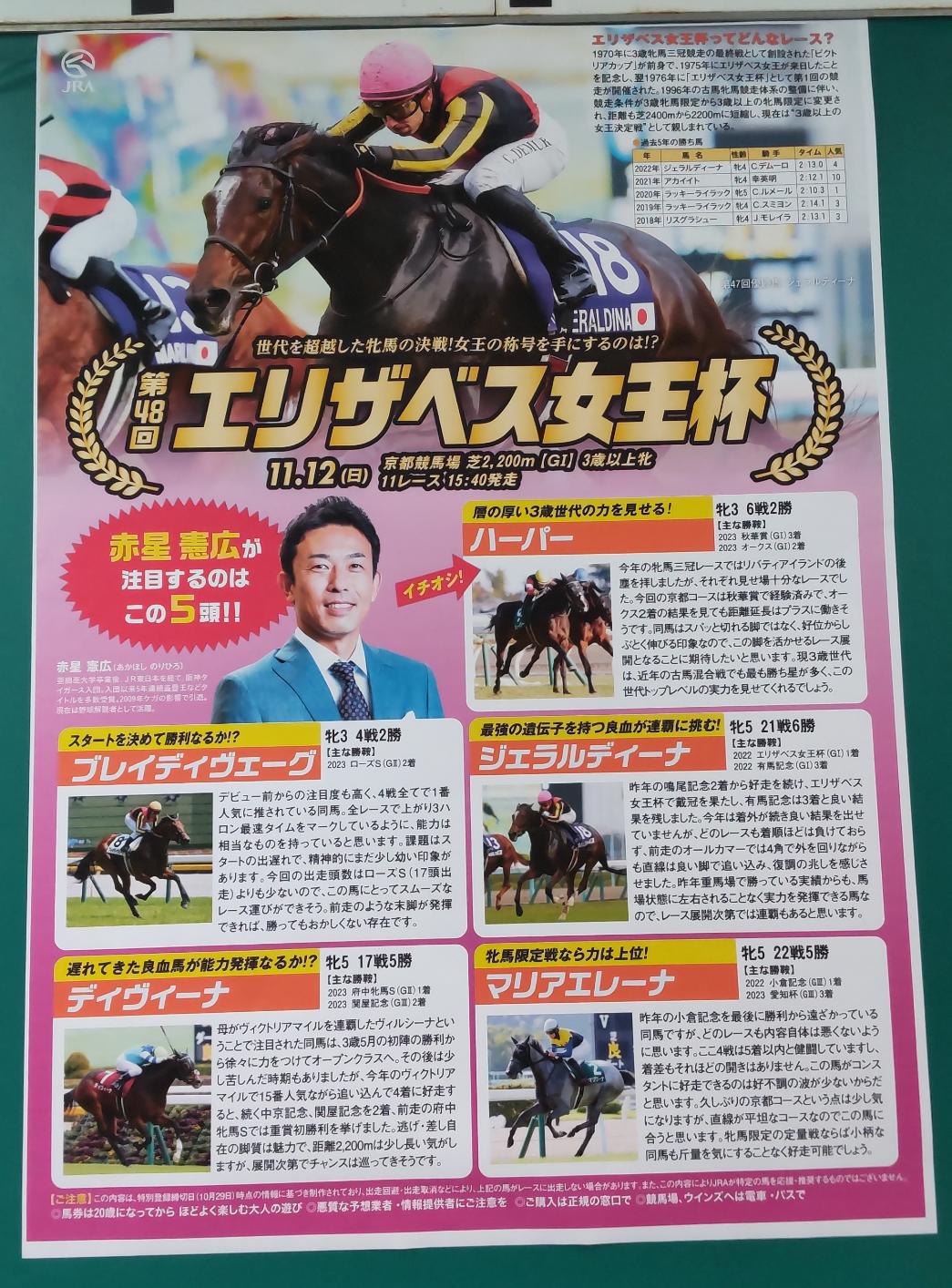 こちらはエリザベス女王杯の思いつきなので、それにしても少頭数のレースは寂しいです。