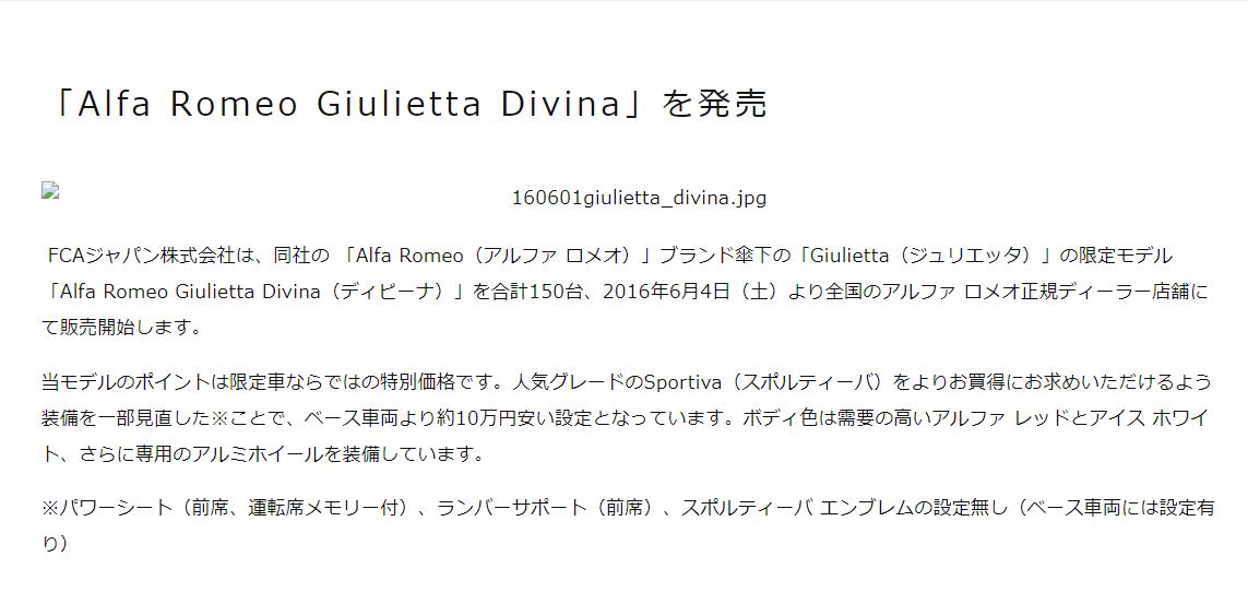 Alfa Romeo Giulietta【Divina】という車も販売したとか。