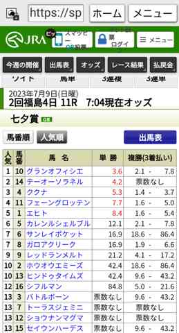 又、昨年1着馬番は七夕賞①人気2着の馬番。