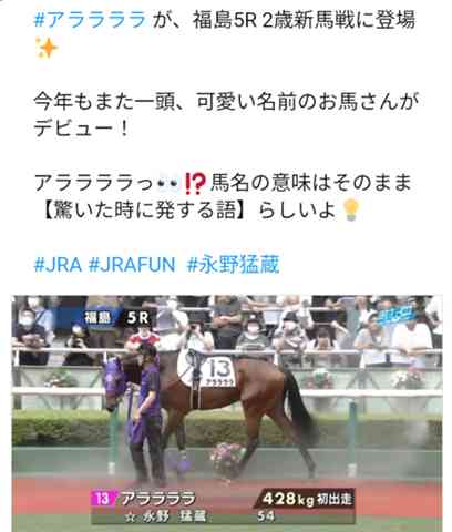 「アララララ」がJRA FUNでも取り上げられていますが【驚いた時に発する語】と書かれてます。同じ⑬番なので