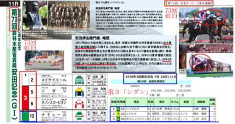 もう一つ、安田伊左衛門の写真が真ん中に写っていて気になるのは、昨年の安田記念