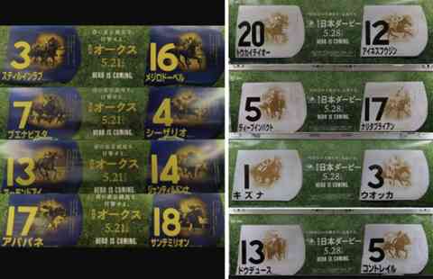 私は【ダービー&オークス】セット出考えております。そして、汗血馬さんの皐月賞の時に話が出たディーマジェスティ。2016年「まさよし」と「正義」の馬番。どんな配置になるか楽しみですよね。