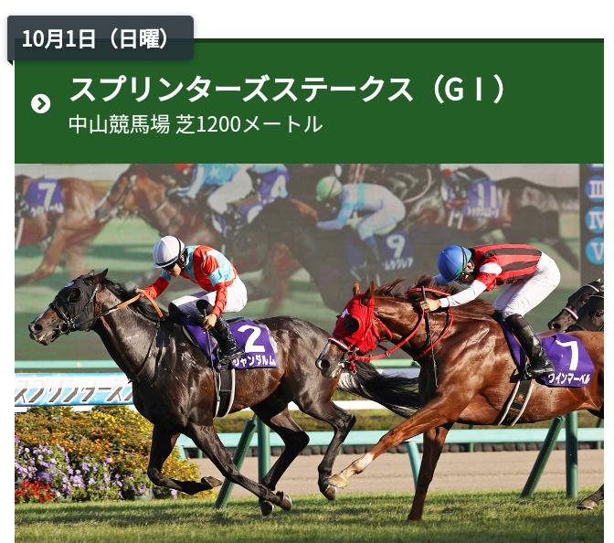 JRAのHPのスプリンターズS画像の文字が白と青の染分け。