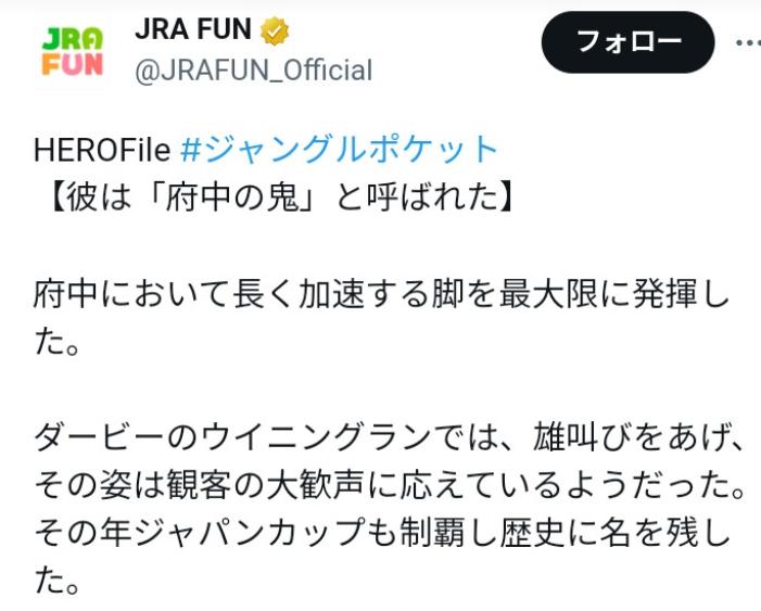 今週、JRA FUNで「ジャングルポケット」