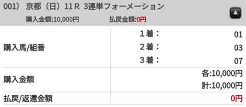 順番は違えど組み合わせバッチリでした。シルヴァーソニック軸でしたので抑えのジャスティンパレスからの馬連のみという結果。