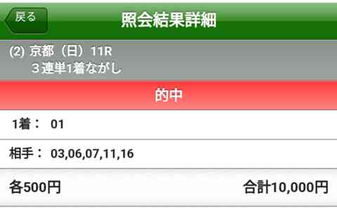 1ー16のワイドのみ。せめて3連複は押さえておけば・・・僕としては買い目が少な過ぎました。