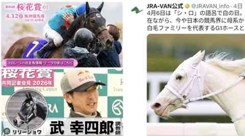 JRA-VANの投稿は『シロ』と『白毛ファミリー』。