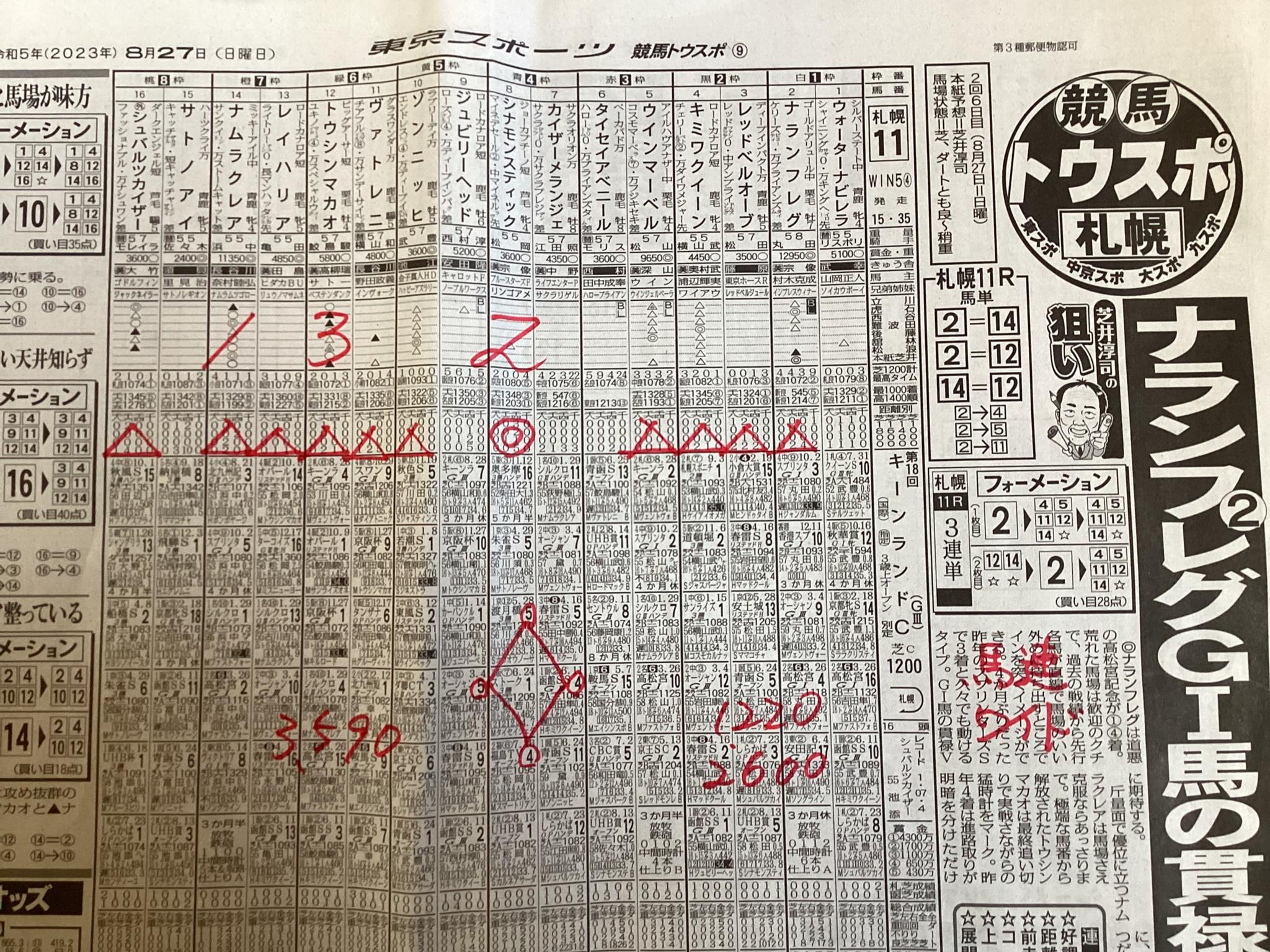 札幌は8番から馬連ワイド的中で、先々週の北九州記念も的中なので2週連続的中となった