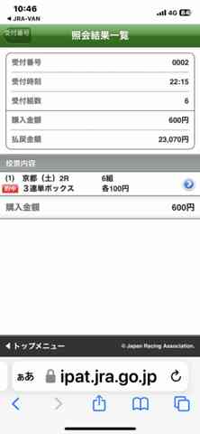 又、カキコミが間に合わなかったレースが当たってしまいました。