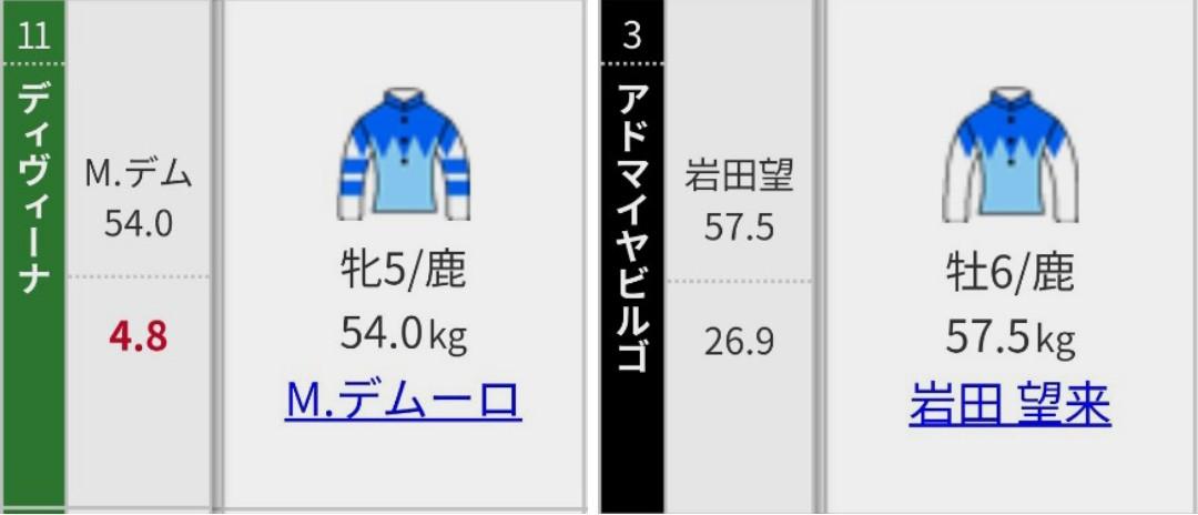 武はビリでした。面白いのは両方とも二着が同じ騎手(横山典)だというところ。