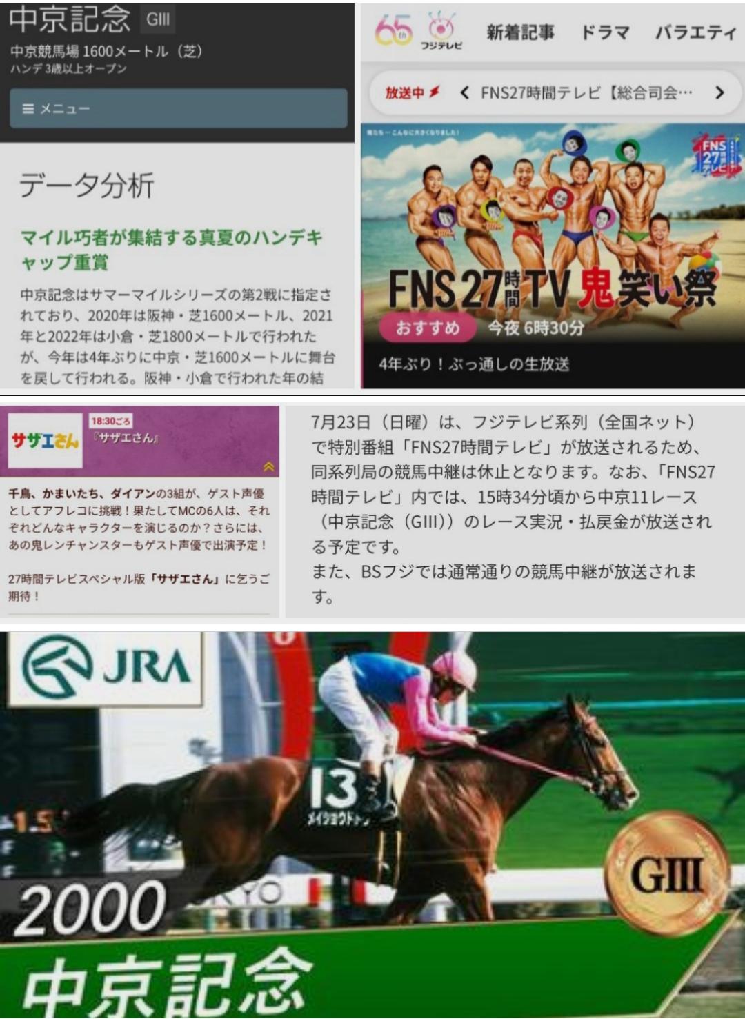 「4年ぶり」中京開催の中京記念。JRAでも告知しているフジテレビ。今週は「4年ぶり」の「【27】時間テレビ」。フジテレビ【65周年】。