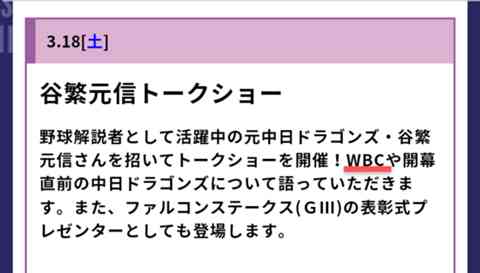 CMのキングヘイローも「23」年前ですし、18日の中京競馬場でゲストの谷繁がWBCについて語るようなので解禁かな〜と思っております。