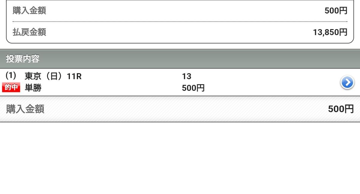 最後やっと単勝と万馬券的中出来ました。