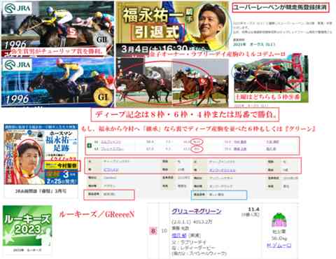 ディープ記念は【グリーン】と【6枠】に注目。し、ダンスから「武・典コンビ」がその相手に。