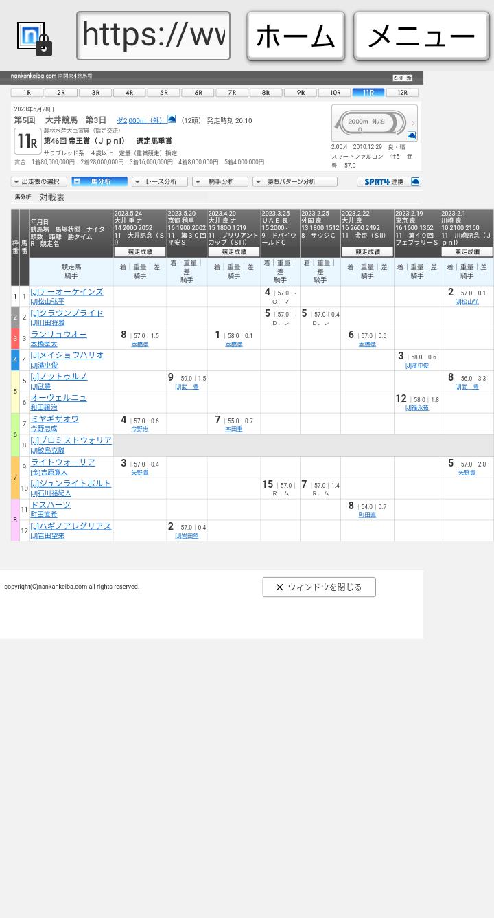 帝王賞の外から⑤番にシルク。そして宝塚記念⑨番の鮫島。