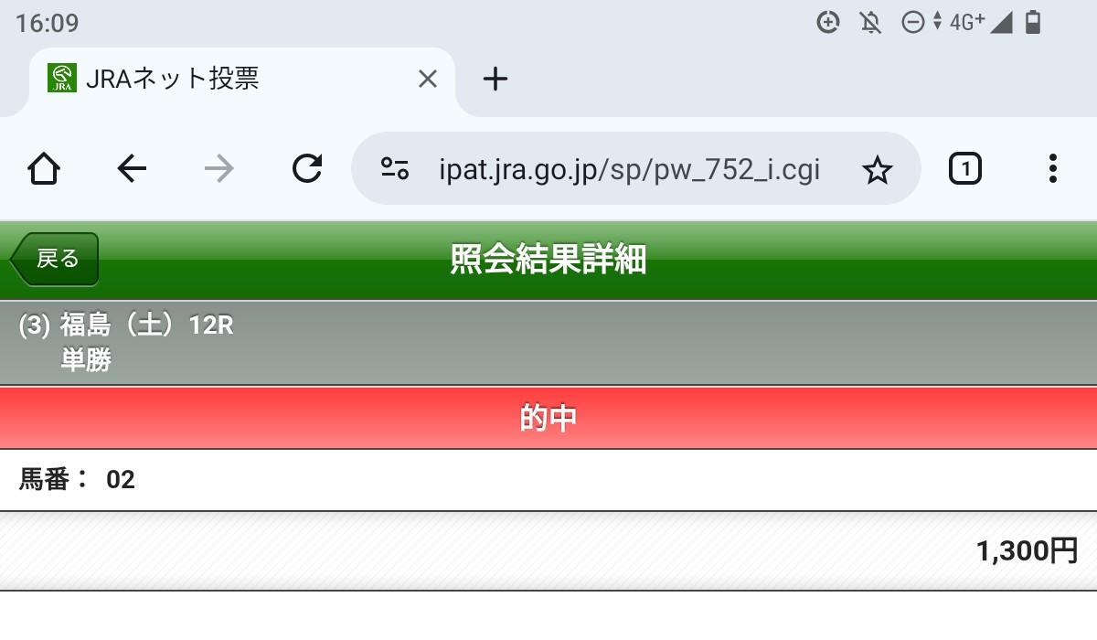 深夜に書いた東京1R⑥人気6着と④人気12着。