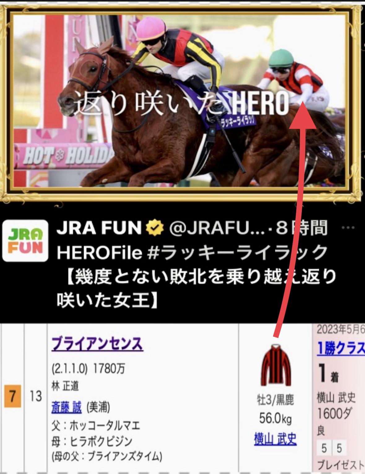 寝ぼけたじじいさん3連単、3連複的中おめでとう御座います、JRAホームページに星の勝負服が出ていたので、マテンロースカイ軸で勝ったんですが、ルージュエヴァイユも、星の勝負服他でもしっかり17番のサイン出てましたね、こちらに書いた予想は抜け目ばかり修行が足りないな。