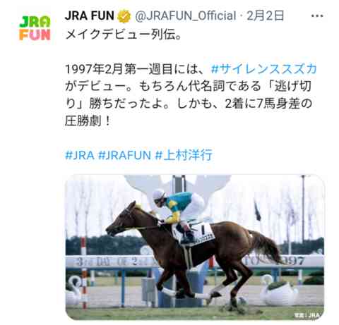 きさらぎ賞は先日サイレンススズカの新馬戦がJRA FUNに出ていたのでそこから出走表を見てると、出走馬の中で新馬戦で勝っているのは