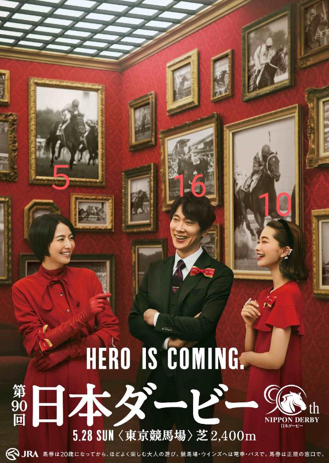 英雄を超えろ、の超えろ、は、父サトノダイヤモンドが成し得なかったダービー優勝を意味し、かつ、昨年優勝の武豊騎手を英雄とするならば、それを越えるのは、牝馬牡馬優駿を連続優勝できる川田騎手ではないかと思ったから。オークスの同着ゼッケン17、18番はオークスでは何もなかったと思うし、大外20番トウカイテイオーを出してきてるのも、18番の強調と考えています。