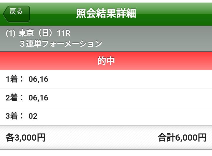 馬連、3連複、3連単をゲット出来ました。3連複はダブって的中なので二口。素直に嬉しいです。