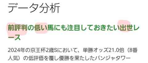 「前評判の低い馬にも注目…」とありますが…少し違和感を感じてます。
