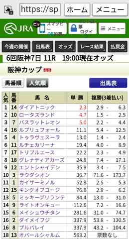 ※ 阪神競馬場イベント 阪神タイガースゲスト 掛布、藪、亀山元選手からの背番号から藪 18は人気馬ですが、堅い気がしています。