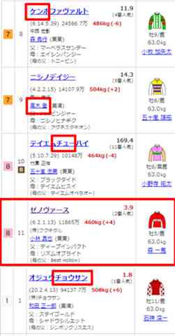 中山、阪神の土曜日の出馬表を眺めてみると、居ました、居ました。