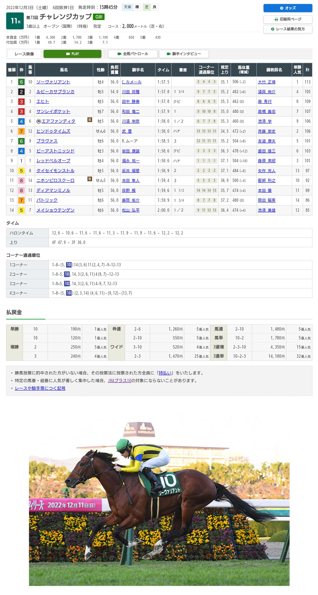 枠順確定前に考えていた事。気になっていたレース。同じ阪神2000で行われた昨年のチャレンジカップ。画像で大きく取り上げられている社台とルメール。