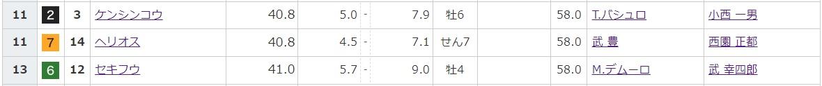 こちらもテイエムは消えたものの、メイショウが3着なので、一応頭に残します。