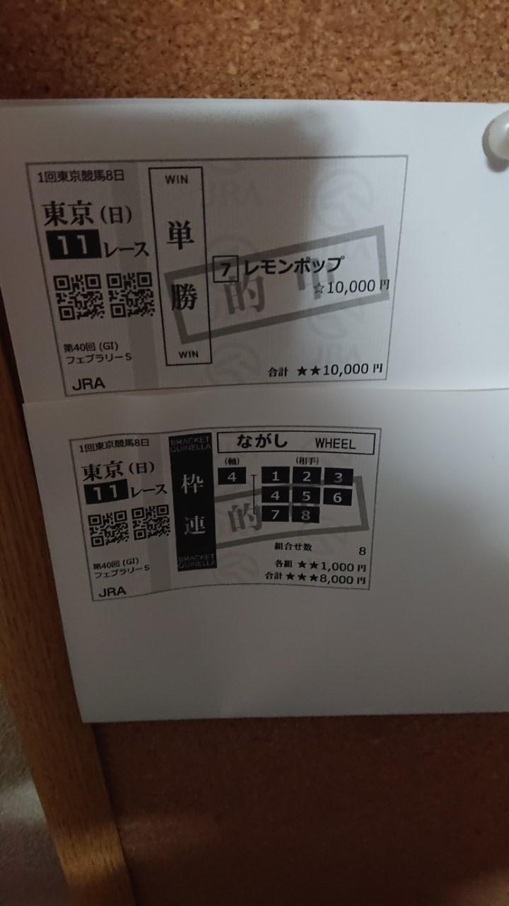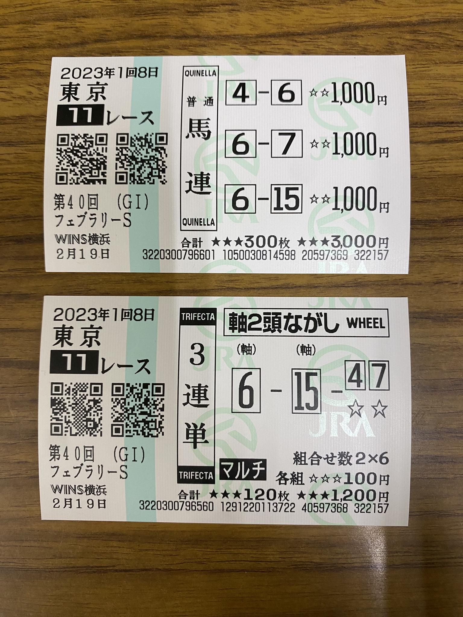 フェブラリーSは4番の単勝と馬単④→⑦と3連単④→⑦→⑫⑭⑮を買いましたが・・・