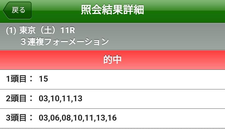 ガイセンさん、単勝と複勝2つと3連複的中おめでとうございます。