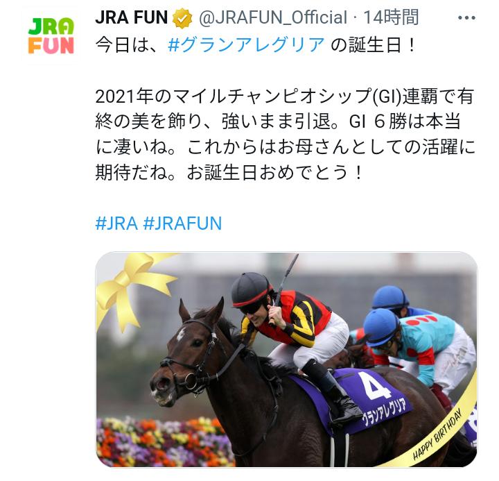 先日、JRA FUNにもグランアレグリアの誕生日を祝うコメントがあったのでこれをヒントに考察してみました。