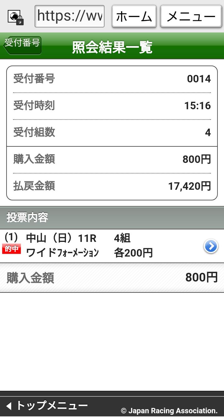 ミッティさんの的中は[3]にこだわった凄い馬券ですね。