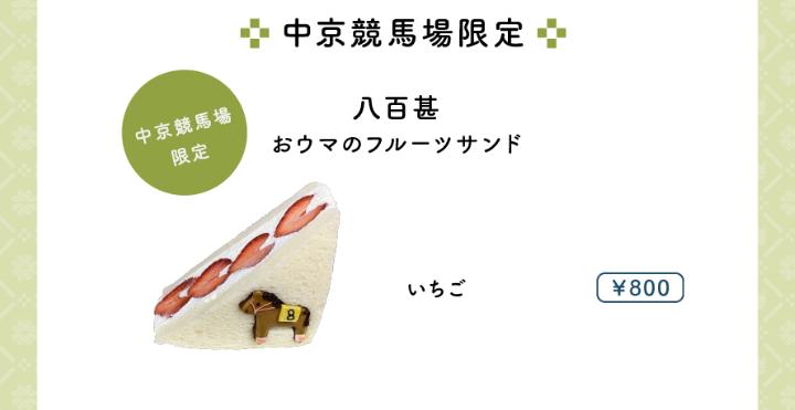 もう一つ中京競馬場のウマジョで売っているらしい おウマのフルーツサンドはイチゴで黄色の⑧番などなどから