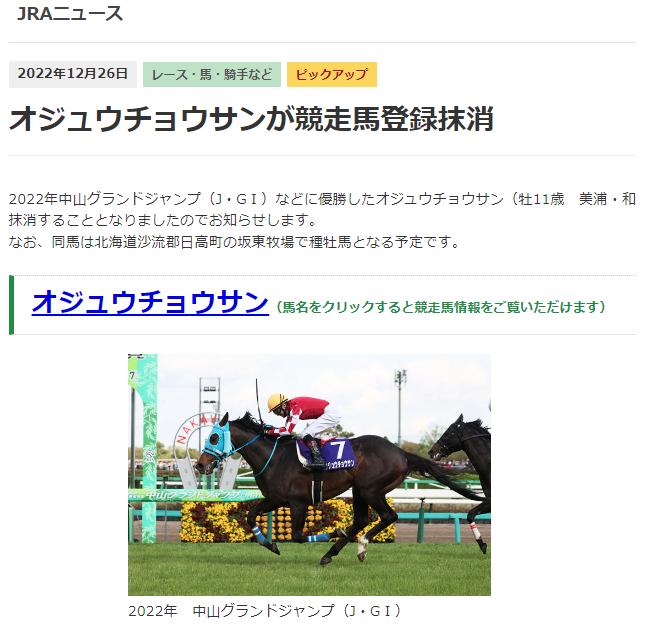 7番 画像 オジュウチョウサン抹消登録のお知らせ