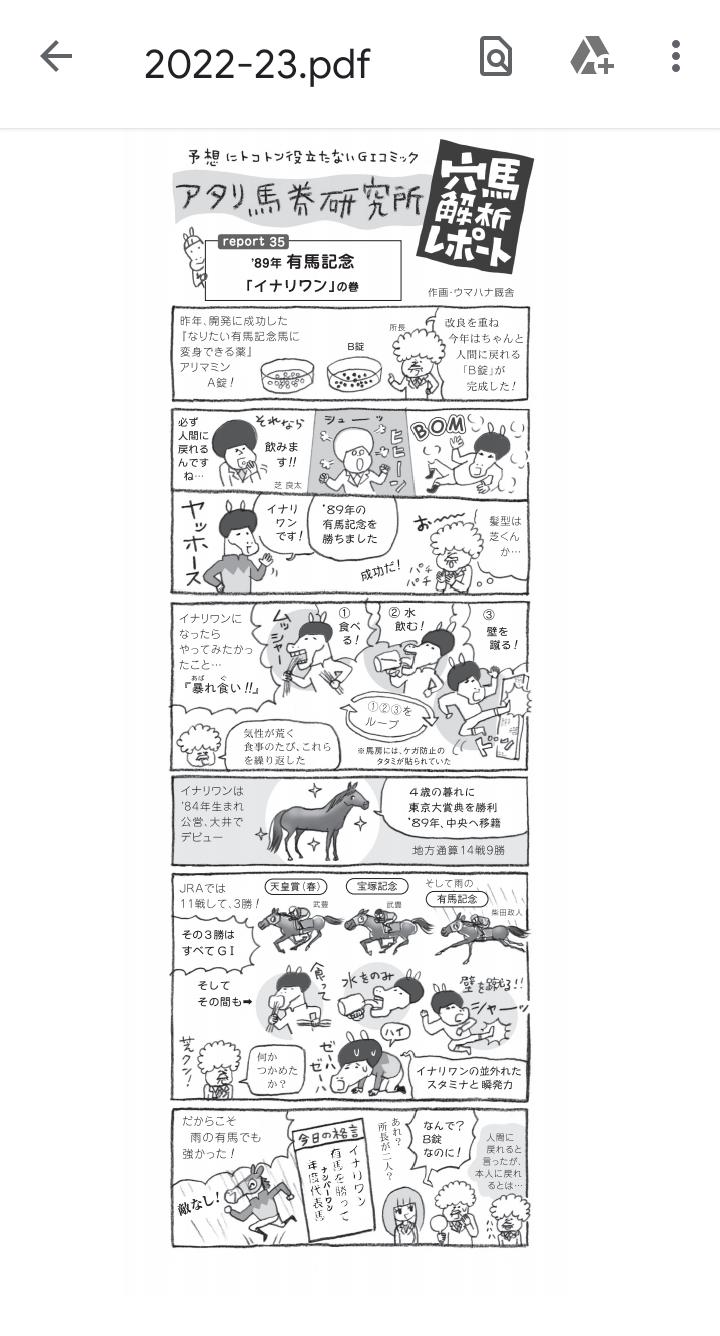菜:有馬記念結論。CMのオグリキャップ。2頭の三歳馬③⑩とウインマイティ―。