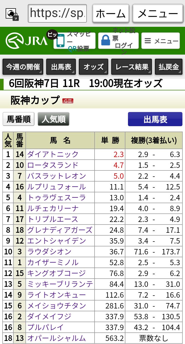 この程度の単勝では本日の出来では焼け石に水ですがこのパターンは買わない訳にはいきません。