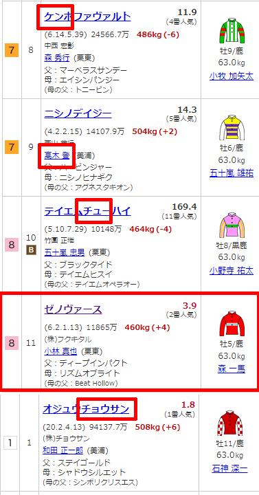 ①番⑪歳のチョウサン。⑪番のゼノヴァース。森①馬。