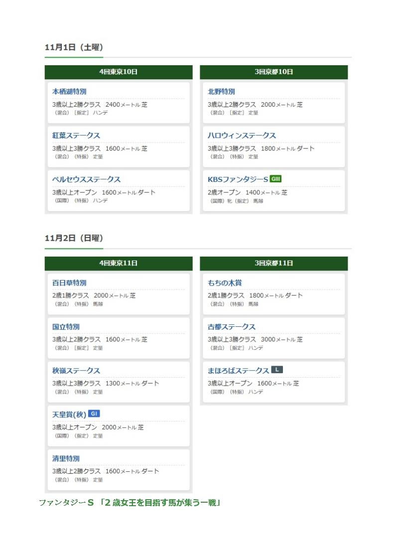 因みに番組表には11月1日(土)東京3R未勝利芝2000mと11月2日東京5R新馬芝2000mがあります。