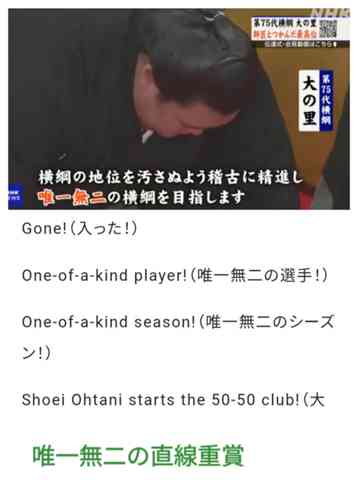 大の里の「唯一無二」は知りませんでした。参考にします。