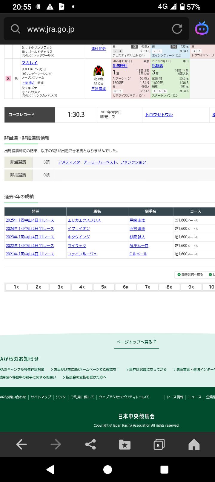 昨年1月5日1中山初日8Rで行われ3枠ゾロ目5番④人気→6番②人気で決着。