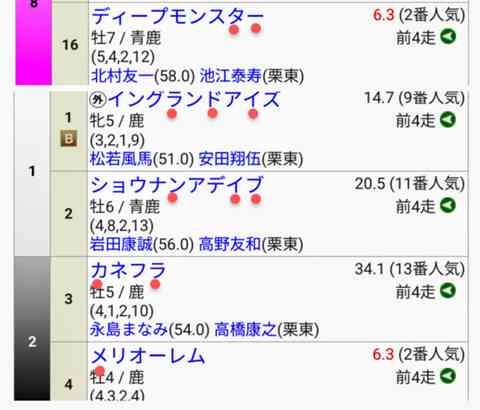 私は◎16番でしたが1番を軽視したため