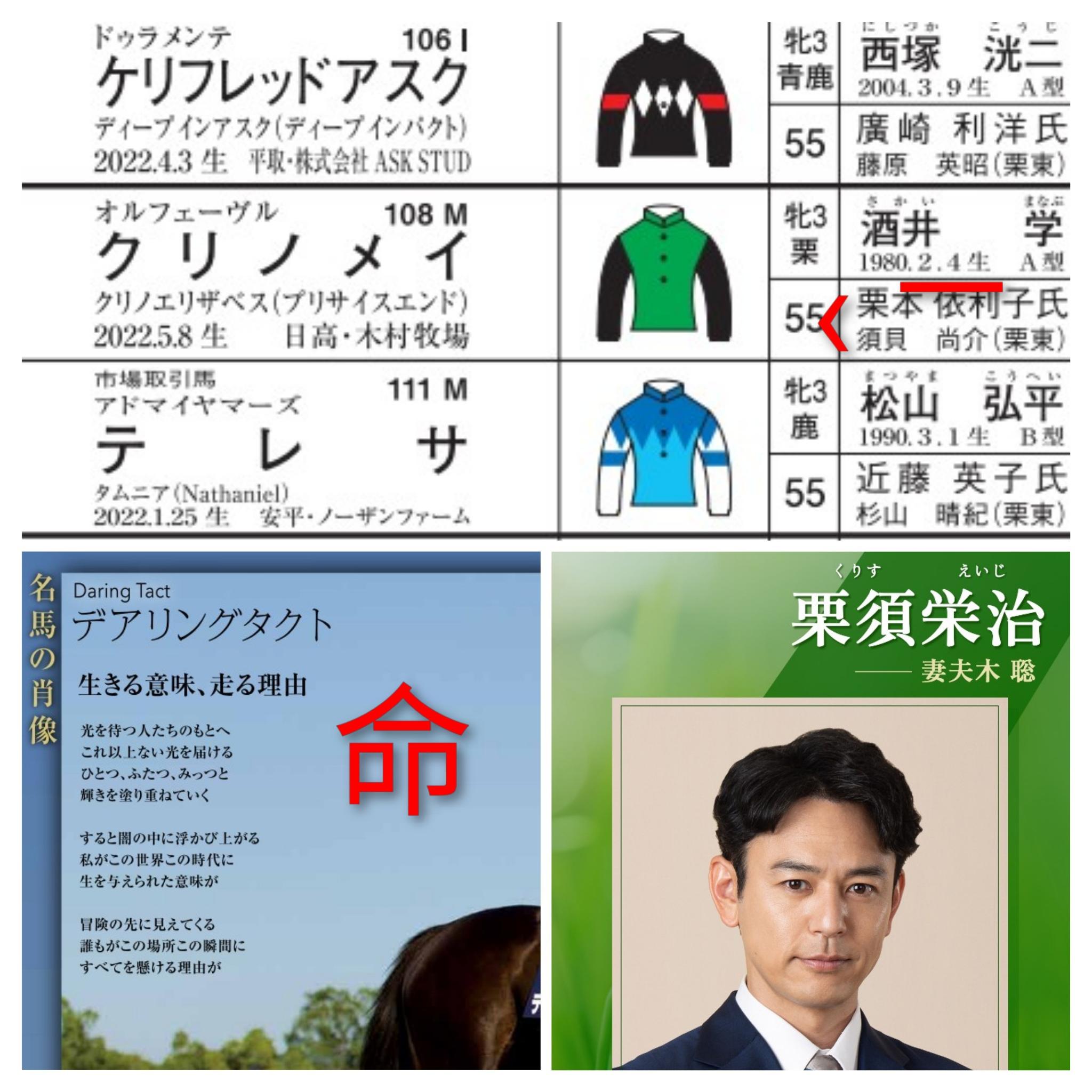 また一部でも取り上げられている調教師+馬主で【栗須】、誕生日は佐々木蔵之介と「酒井学」が同じというのは「オトリ」臭いな〜と思ってたんですけど…